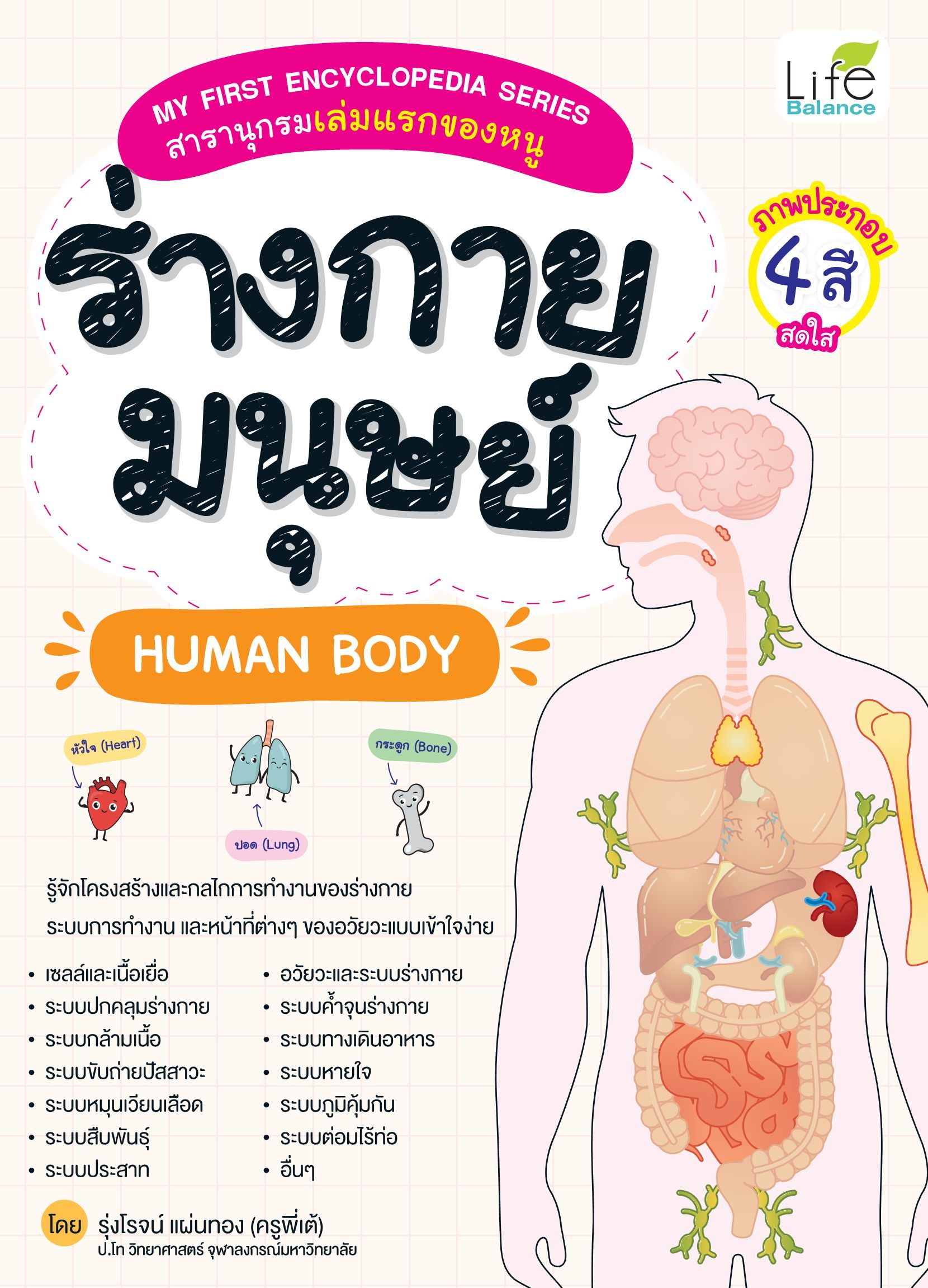 เนื้อหาย่อ : รู้จักโครงสร้างและกลไกการทำงานของร่างกาย ระบบการทำงาน และหน้าที่ต่างๆ ของอวัยวะแบบเข้าใจง่าย ด้วยภาพประกอบ แผนผัง Mind Map 4 สีสดใส รวมถึงรวบรวมคำศัพท์ที่ควรรู้มากกว่า 600 คำ ครบในเล่มเดียว เสริมสร้างการเรียนรู้ทั้งในและนอกห้องเรียน รวมถึงใช้อ้างอิงได้อย่างมั่นใจ